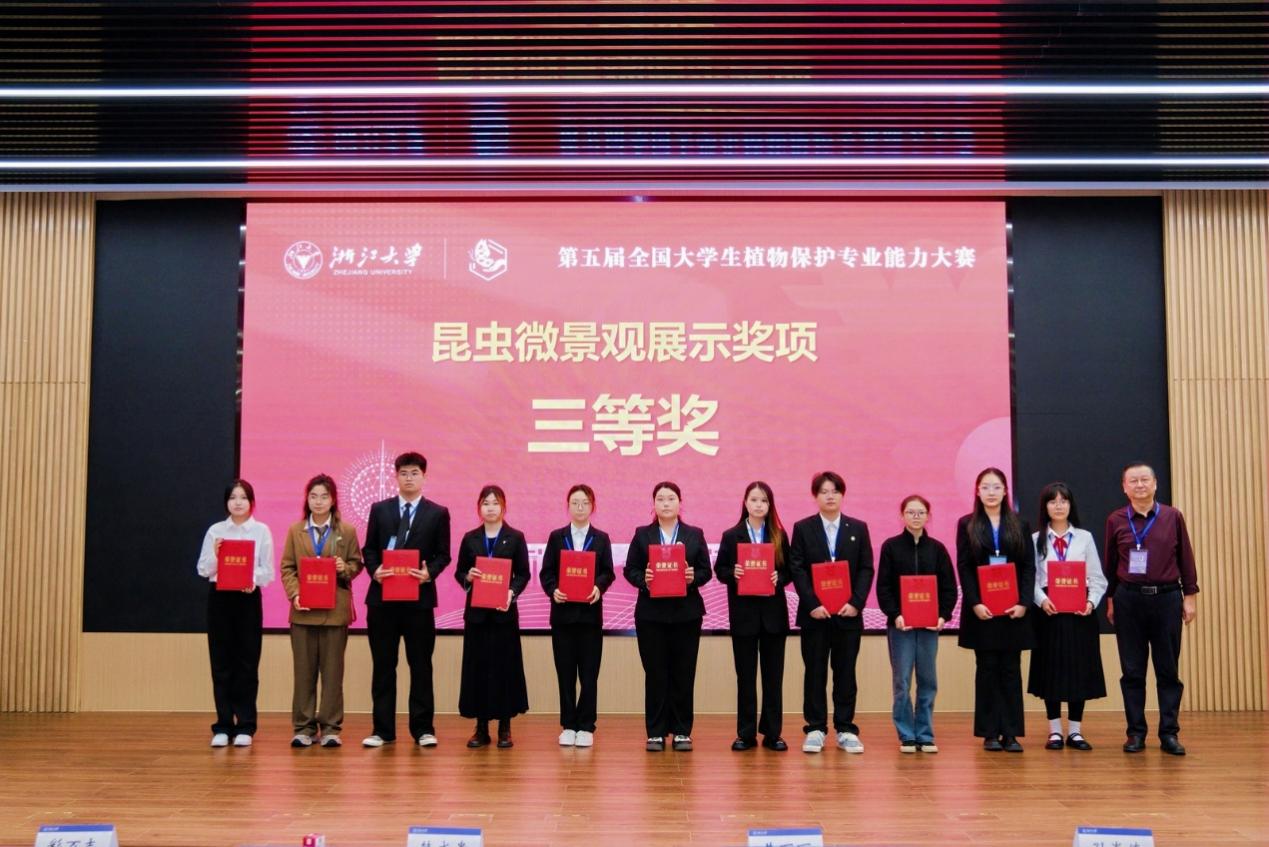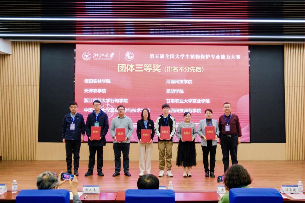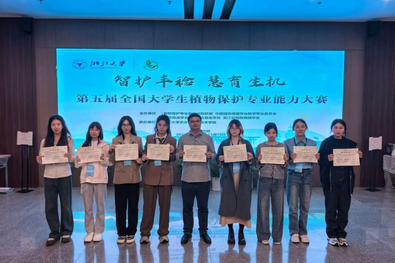本次大赛竞争激烈,来自全国近50余所涉农高校的600余名师生代表同台竞技。我院生物技术专业的同学们首次参赛,在面对植物保护科班出身的对手时毫不怯场,将生物技术的学科优势与竞赛内容巧妙结合,展现了行知学子卓越的跨界应用能力和综合素质。作为首次参赛的新面孔,浙江师范大学行知学院代表队表现惊艳,凭借扎实的专业功底和出色的创新能力,从众多高校中脱颖而出,一举斩获国家级二等奖2项、三等奖7项,并荣膺团体三等奖与优秀组织奖,实现了参赛成绩与精神文明的双丰收。