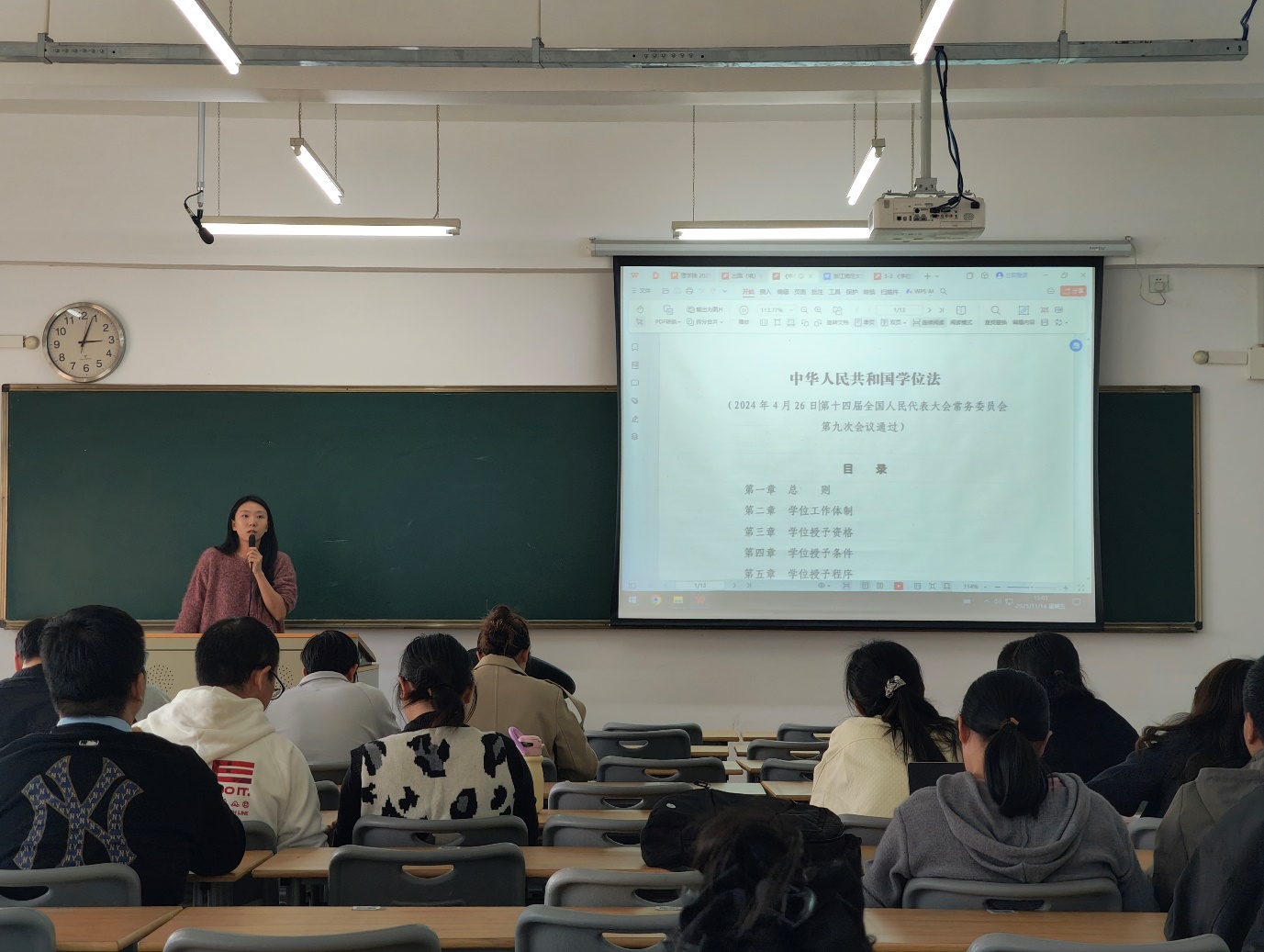 在学位法学习环节,与会教职工集中学习了《中华人民共和国学位法》的核心条款与精神实质。通过学习,大家深刻认识到学位法对规范学位授予、保障教育质量、维护学术诚信的重要意义,也决心要将学位法学习与教学科研、人才培养工作紧密结合,严格遵守相关规定,规范学术行为,不断提升人才培养质量与学科建设水平。
