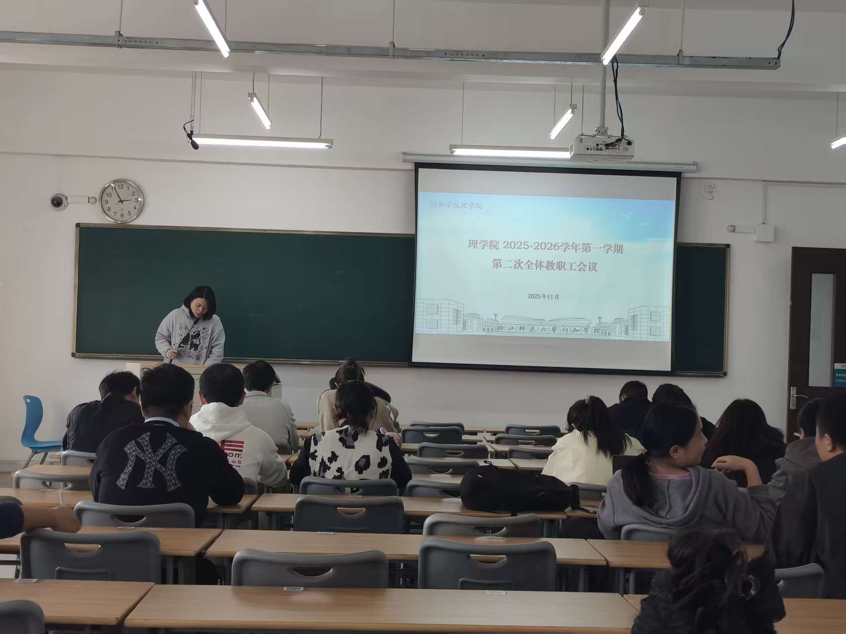 为进一步凝聚全院教职工共识,明确近期重点工作方向,规范教学管理与人事流程,强化学生工作实效,理学院于11月14日下午召开2025-2026-1学期第二次全体教职工会议。理学院领导班子成员、理学院全体教职工参加会议,会议由理学院院长王芳主持。