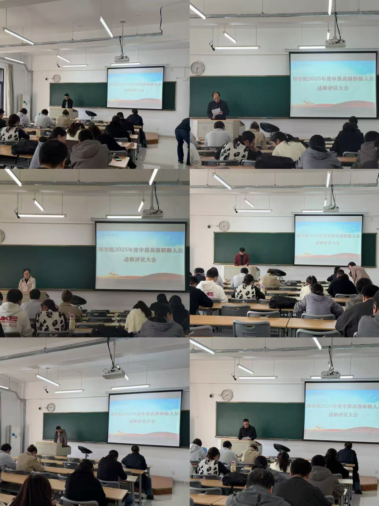 会议伊始,6名申报高级职称的教职工依次上台述职。各位申报人对照评审标准,围绕个人思想政治表现、教学科研成果、学科建设贡献、团队协作及未来发展规划等方面进行述职。参加会议全体教师在听取了申报教师的述职报告后,进行了民主测评投票。