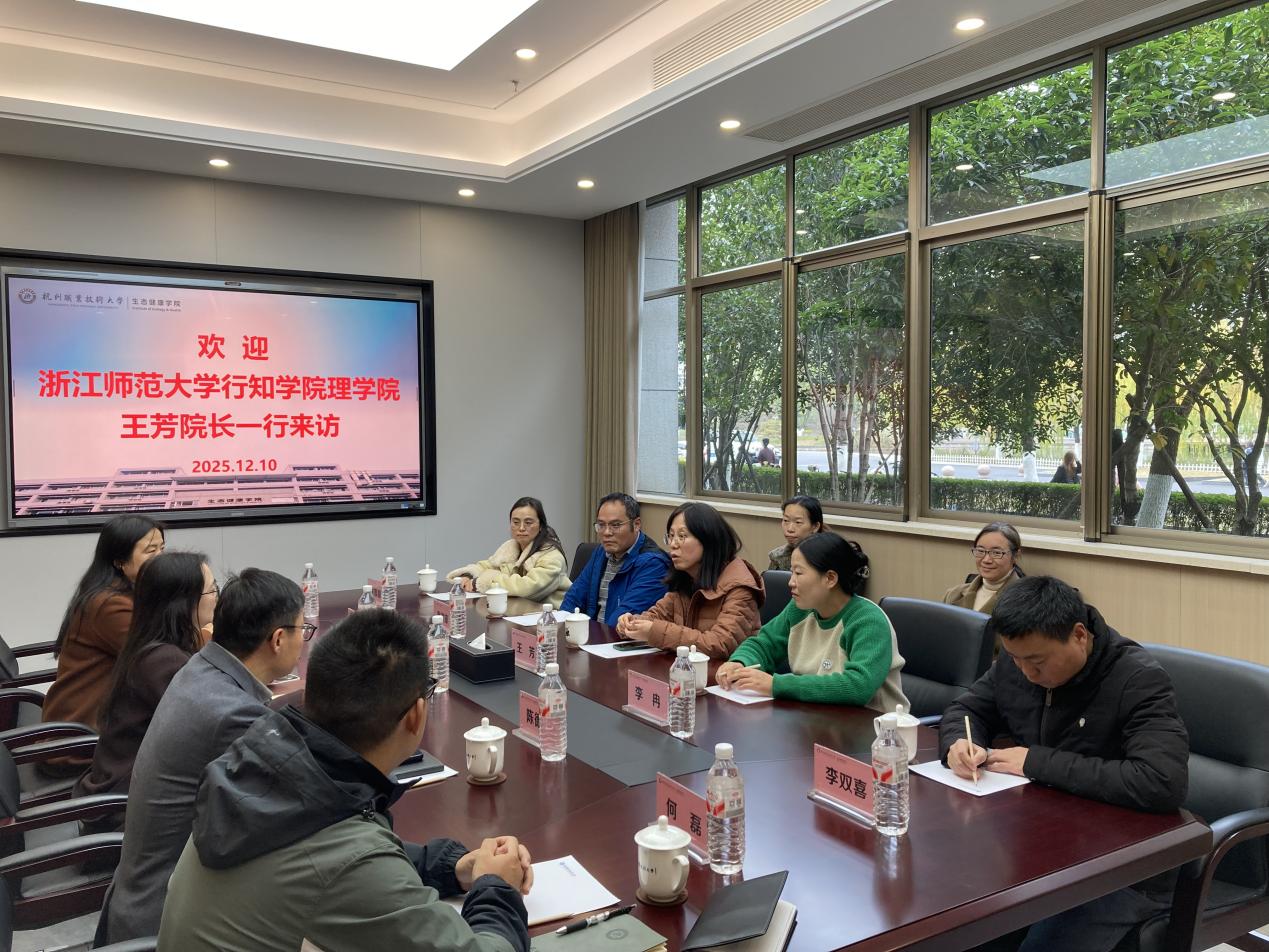 12 月 10 日下午,浙江师范大学行知学院理学院院长王芳率食品质量与安全专业骨干教师一行,赴杭州职业技术大学生态健康学院开展交流调研,双方围绕产教融合、专业建设等核心议题展开深度研讨,并实地走访了生态健康学院特色实验室。
