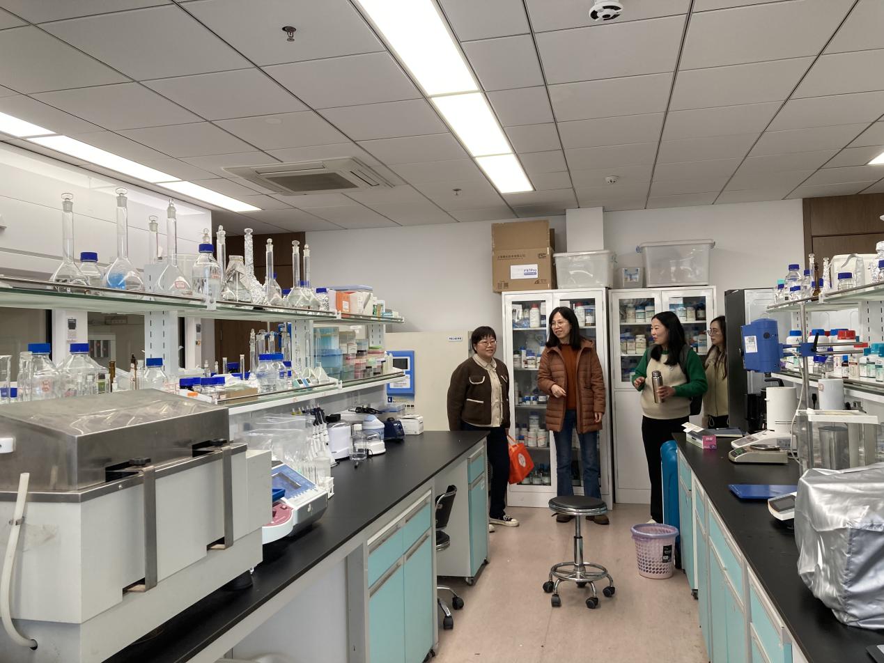 交流结束后,农科院实习指导教师代表带领学院检查团队参观了研究所实验室,从食品理化分析室到微生物检测平台,详细介绍了学生参与项目的场地与设备配置,让学院教师直观了解到学生的实习工作环境。