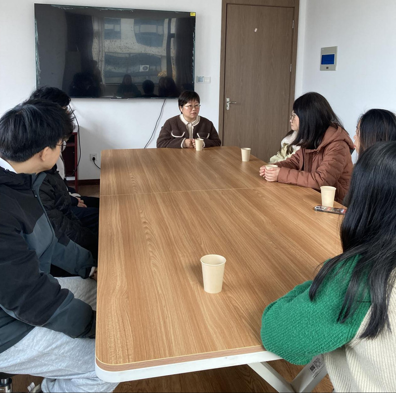 实习检查团队与农科院实习指导教师代表、实习学生围坐于会议室,开启深入交流。王芳院长率先关切问询:“同学们在岗位上的适配度怎么样?实操或沟通中有没有遇到棘手问题?”她一边向农科院指导教师了解学生的任务完成度、实操表现,一边倾听学生实习中的困惑与挑战,同时鼓励同学们:“要主动扎进岗位里,充分发挥主观能动性,多和校内外指导老师沟通,把实习当成积累专业经验的‘实战练兵场’。”